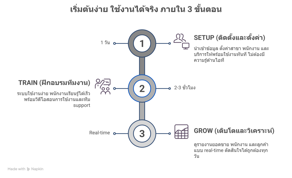 ปิดยอดรายวันใน 1 คลิก ไม่ต้องนับเงินซ้ำอีกเลย Close Daily Sales in One Click. No More Counting Errors.